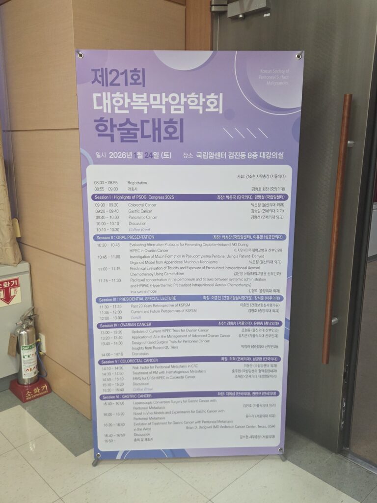 2026년 1월 24일, 제21회 대한복막암학회 학술대회가 국립암센터 검진동 8층 대강의실에서 성공적으로 개최되었습니다.